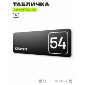 Найти - Табличка с номером кабинета Кабинет №54, для офиса, 30 х 10 см, серия COSMO, черная, Айдентика Технолоджи