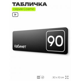 Найти - Табличка с номером кабинета Кабинет №90, для офиса, 30 х 10 см, серия COSMO, черная, Айдентика Технолоджи
