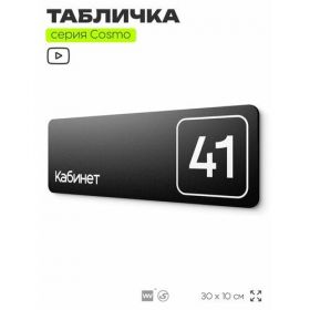 Найти - Табличка с номером кабинета Кабинет №41, для офиса, 30 х 10 см, серия COSMO, черная, Айдентика Технолоджи