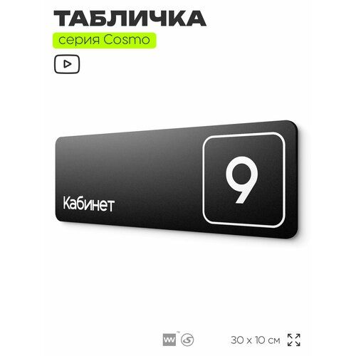 Найти - Таблички с номером кабинета Кабинет №9, для офиса, 30 х 10 см, серия COSMO 3010, черная, Айдентика Технолоджи
