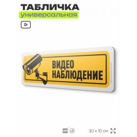 Найти - Табличка Ведется видеонаблюдение, на дверь и стену, информационная, пластиковая с двусторонним скотчем, 30х10 см, Айдентика Технолоджи