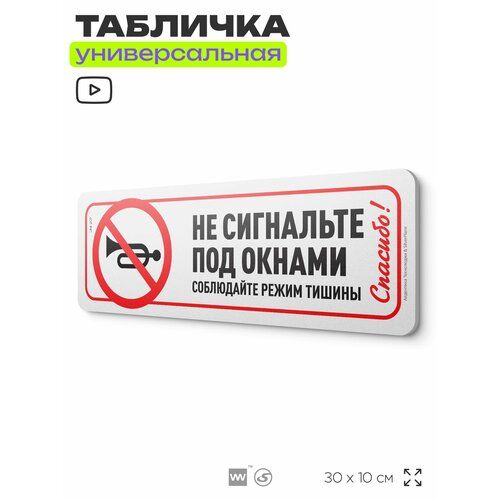 Найти - Табличка Не сигнальте под окнами, на дверь и стену, для подъезда, информационная, пластиковая с двусторонним скотчем, 30х10 см, Айдентика Технолоджи