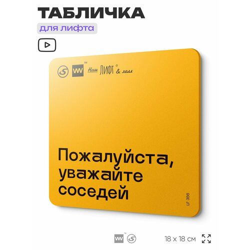 Табличка с правилами для лифта "Уважайте соседей", 18х18 см, пластиковая, SilverPlane x Айдентика Технолоджи 103695361629