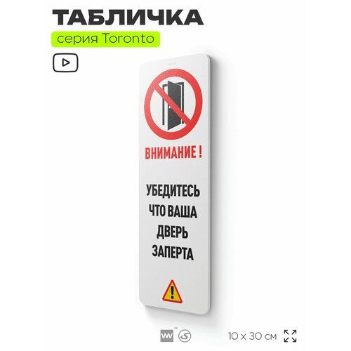 Найти - Табличка Внимание, убедитесь, что ваша дверь заперта, на дверь и стену, информационная, пластиковая с двусторонним скотчем, 10х30 см, Айдентика Технолоджи