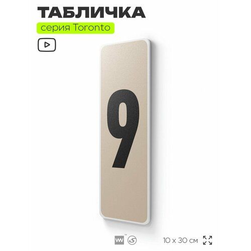 Найти - Табличка с номером 9, на дверь и стену, информационная, пластиковая с двусторонним скотчем, 10х30 см, Айдентика Технолоджи