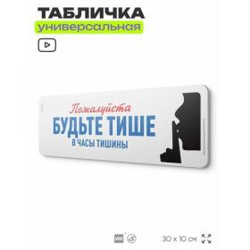 Найти - Табличка Будьте тише, на дверь и стену, для подъезда, информационная, пластиковая с двусторонним скотчем, 30х10 см, Айдентика Технолоджи