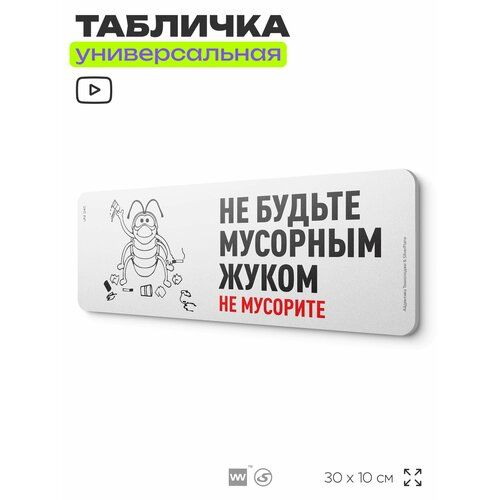 Найти - Табличка Не будьте мусорным жуком, не мусорите, на дверь и стену, для подъезда, информационная, пластиковая с двусторонним скотчем, 30х10 см, Айдентика Технолоджи