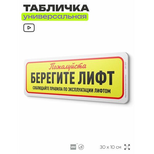 Найти - Табличка Берегите лифт, на дверь и стену, для подъезда, информационная, пластиковая с двусторонним скотчем, 30х10 см, Айдентика Технолоджи