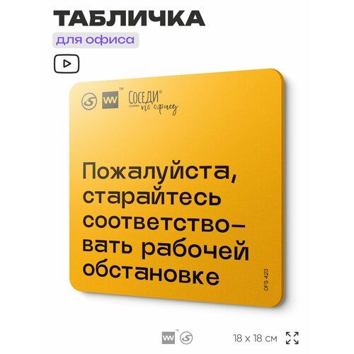 Табличка с правилами офиса "Старайтесь соответствовать рабочей обстановке" 18х18 см, пластиковая, SilverPlane x Айдентика Технолоджи 103696062584