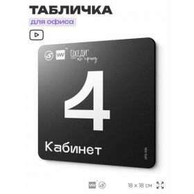 Табличка информационная "Кабинет №4" 18х18 см, пластиковая, SilverPlane x Айдентика Технолоджи 103696072632