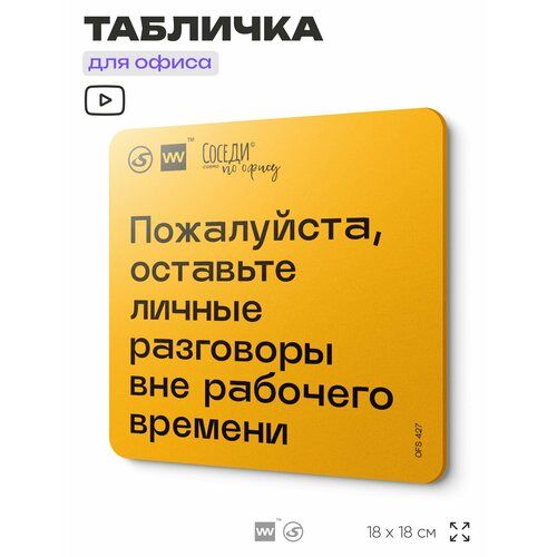 Табличка с правилами офиса "Оставьте личные разговоры вне рабочего времени" 18х18 см, пластиковая, SilverPlane x Айдентика Технолоджи 103696078511