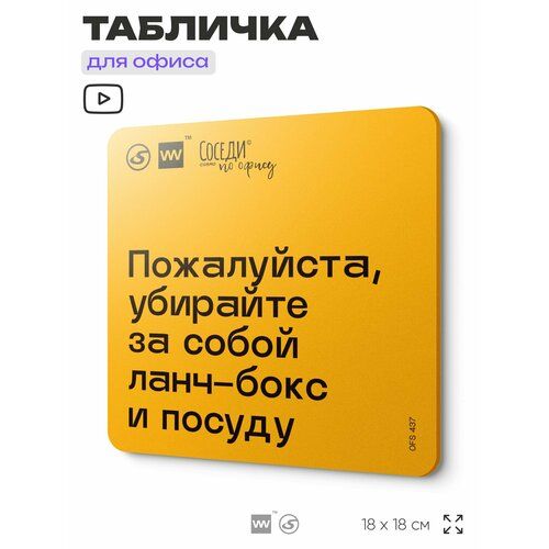 Табличка с правилами офиса "Убирайте за собой ланч-бокс и посуду" 18х18 см, пластиковая, SilverPlane x Айдентика Технолоджи 103696078516
