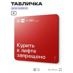 Найти - Табличка информационная Курить в лифте запрещено для лифта и холла, 18х18 см, пластиковая, SilverPlane x Айдентика Технолоджи