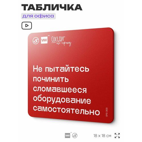 Табличка с правилами офиса "Не пытайтесь починить сломавшееся оборудование самостоятельно" 18х18 см, пластиковая, SilverPlane x Айдентика Технолоджи 103696079095