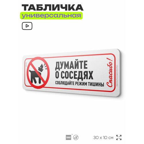 Найти - Табличка Думайте о соседях, соблюдайте режим тишины, на дверь и стену, для подъезда, информационная, пластиковая с двусторонним скотчем, 30х10 см, Айдентика Технолоджи
