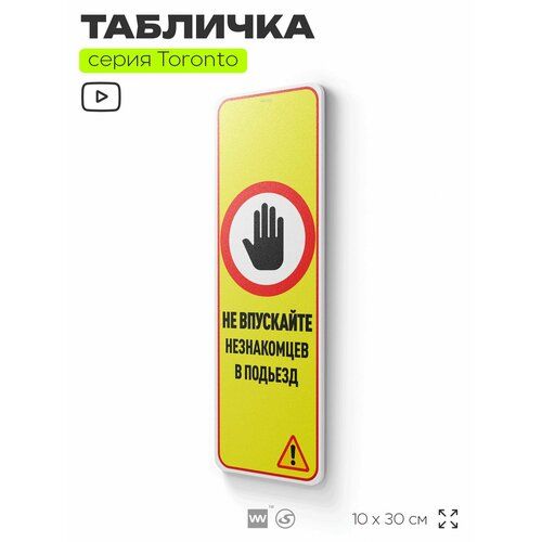 Найти - Табличка Не впускайте незнакомцев в подъезд, на дверь и стену, информационная, пластиковая с двусторонним скотчем, 10х30 см, Айдентика Технолоджи