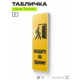 Найти - Табличка Входите по одному, на дверь и стену, информационная, пластиковая с двусторонним скотчем, 10х30 см, Айдентика Технолоджи