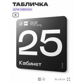 Табличка информационная Кабинет №25 18х18 см, пластиковая, SilverPlane x Айдентика Технолоджи