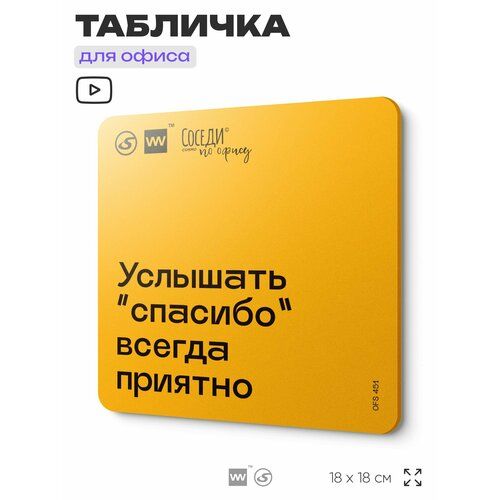 Табличка с правилами офиса "Услышать "спасибо" всегда приятно" 18х18 см, пластиковая, SilverPlane x Айдентика Технолоджи 103696079604