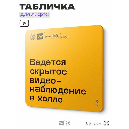 Табличка с правилами для лифта Ведется скрытое видеонаблюдение в холле, 18х18 см, пластиковая, SilverPlane x Айдентика Технолоджи