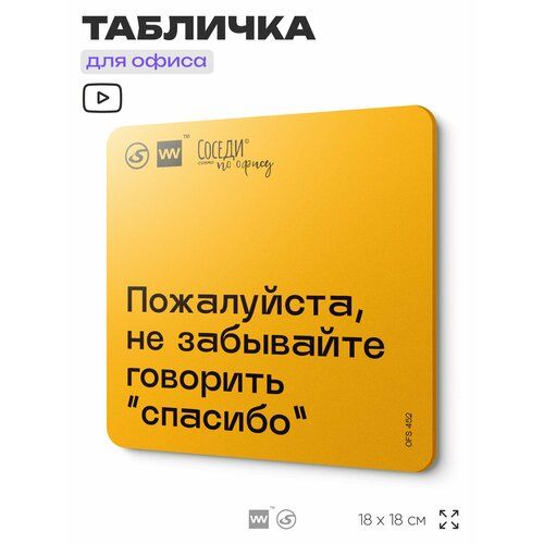 Табличка с правилами офиса "Не забывайте говорить "спасибо" 18х18 см, пластиковая, SilverPlane x Айдентика Технолоджи 103696082174