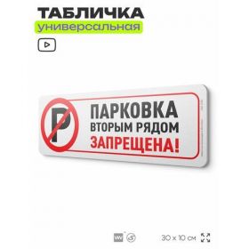 Найти - Табличка Парковка вторым рядом запрещена, на дверь и стену, для подъезда, информационная, пластиковая с двусторонним скотчем, 30х10 см, Айдентика Технолоджи