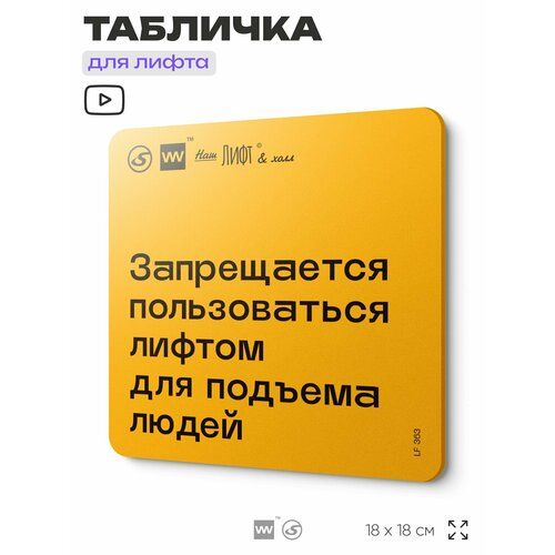 Табличка с правилами для лифта "Запрещается пользоваться лифтом для подъема людей", 18х18 см, пластиковая, SilverPlane x Айдентика Технолоджи 103696083767
