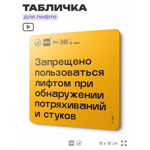 Найти - Табличка с правилами для лифта Запрещено пользоваться лифтом при обнаружении потряхиваний и стуков, 18х18 см, пластиковая, SilverPlane x Айдентика Технолоджи