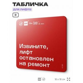 Найти - Табличка информационная Лифт остановлен на ремонт для лифта и холла, 18х18 см, пластиковая, SilverPlane x Айдентика Технолоджи