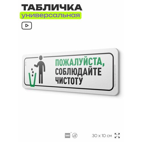 Найти - Табличка Соблюдайте чистоту, на дверь и стену, информационная, пластиковая с двусторонним скотчем, 30х10 см, Айдентика Технолоджи