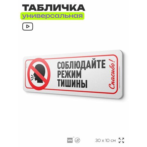 Найти - Табличка Соблюдайте режим тишины, на дверь и стену, для подъезда, информационная, пластиковая с двусторонним скотчем, 30х10 см, Айдентика Технолоджи