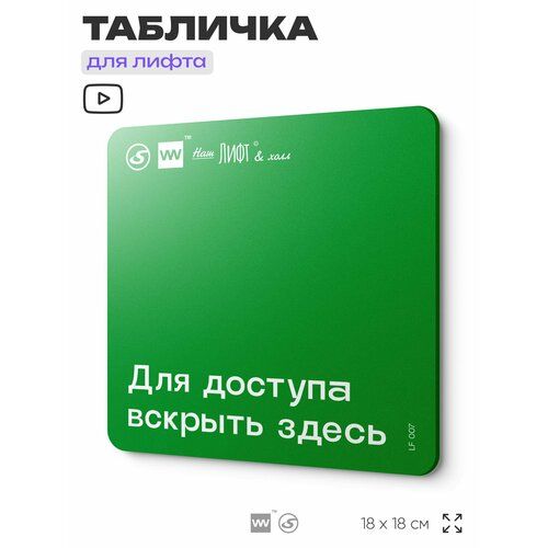 Табличка информационная "Для доступа вскрыть здесь" для лифта и холла, 18х18 см, пластиковая, SilverPlane x Айдентика Технолоджи 103696083825