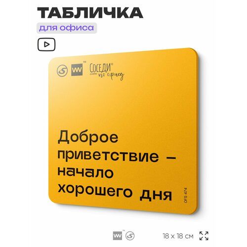 Табличка с правилами офиса "Доброе приветствие - начало хорошего дня" 18х18 см, пластиковая, SilverPlane x Айдентика Технолоджи 103696099704