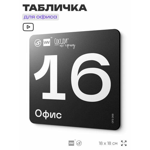 Табличка информационная Офис №16 18х18 см, пластиковая, SilverPlane x Айдентика Технолоджи