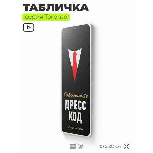 Найти - Табличка Соблюдайте дресс код, на дверь и стену, информационная, пластиковая с двусторонним скотчем, 10х30 см, Айдентика Технолоджи