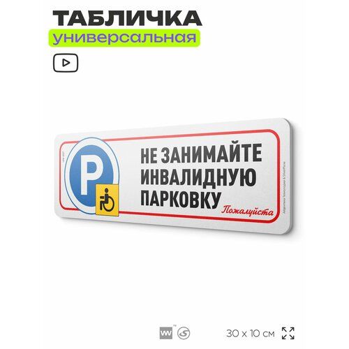 Найти - Табличка Не занимайте инвалидную парковку, на дверь и стену, для подъезда, информационная, пластиковая с двусторонним скотчем, 30х10 см, Айдентика Технолоджи