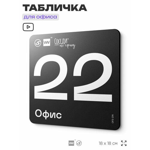 Табличка информационная "Офис №22" 18х18 см, пластиковая, SilverPlane x Айдентика Технолоджи 103696269318