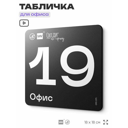 Табличка информационная Офис №19 18х18 см, пластиковая, SilverPlane x Айдентика Технолоджи