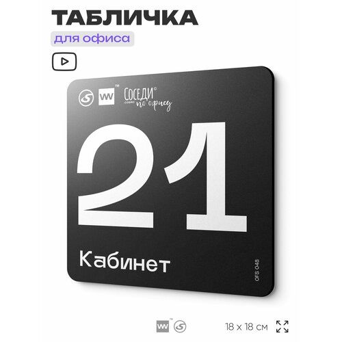 Табличка информационная "Кабинет №21" 18х18 см, пластиковая, SilverPlane x Айдентика Технолоджи 103696269415