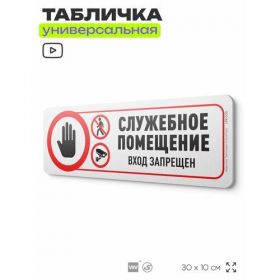 Найти - Табличка Служебное помещение, на дверь и стену, информационная, пластиковая с двусторонним скотчем, 30х10 см, Айдентика Технолоджи