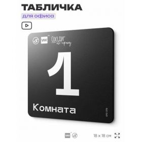 Табличка информационная Комната №1 18х18 см, пластиковая, SilverPlane x Айдентика Технолоджи