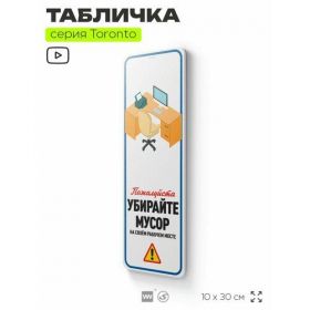Найти - Табличка Убирайте мусор на своем рабочем месте, на дверь и стену, информационная, пластиковая с двусторонним скотчем, 10х30 см, Айдентика Технолоджи