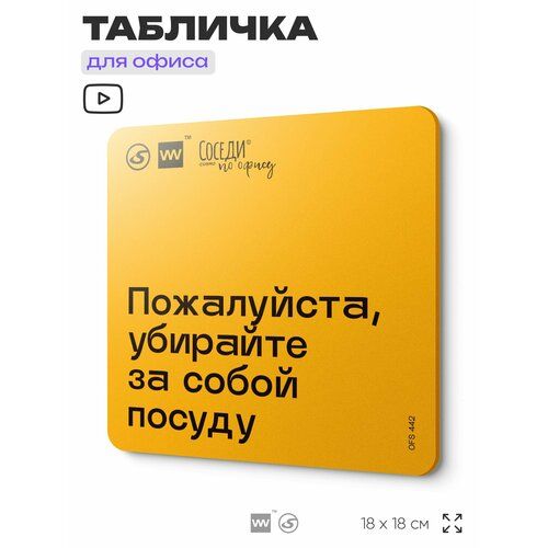 Табличка с правилами офиса "Убирайте за собой посуду" 18х18 см, пластиковая, SilverPlane x Айдентика Технолоджи 103696272176