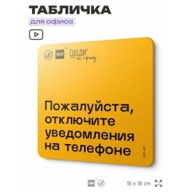 Табличка с правилами офиса "Отключите уведомления на телефоне" 18х18 см, пластиковая, SilverPlane x Айдентика Технолоджи 103696272196