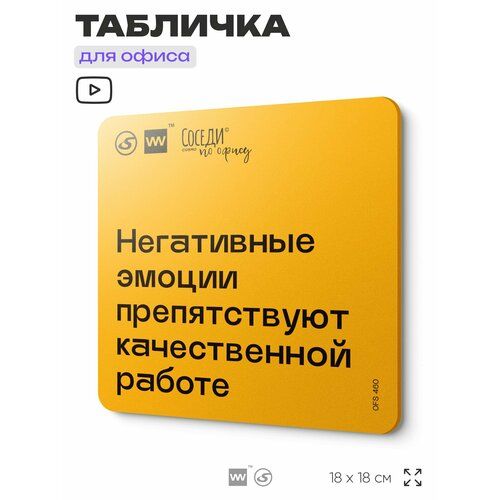 Табличка с правилами офиса "Негативные эмоции препятствуют качественной работе" 18х18 см, пластиковая, SilverPlane x Айдентика Технолоджи 103696272206
