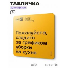 Табличка с правилами офиса "Следите за графиком уборки на кухне" 18х18 см, пластиковая, SilverPlane x Айдентика Технолоджи 103696272220