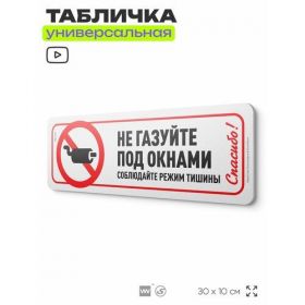 Найти - Табличка Не газуйте под окнами, на дверь и стену, для подъезда, информационная, пластиковая с двусторонним скотчем, 30х10 см, Айдентика Технолоджи