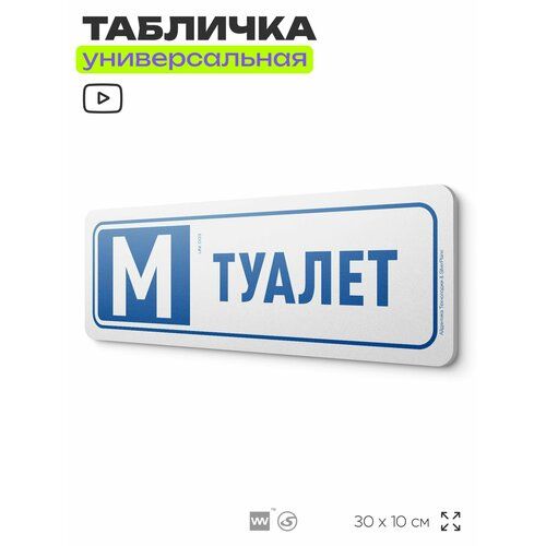 Найти - Табличка Мужской туалет, на дверь и стену, информационная, пластиковая с двусторонним скотчем, 30х10 см, Айдентика Технолоджи