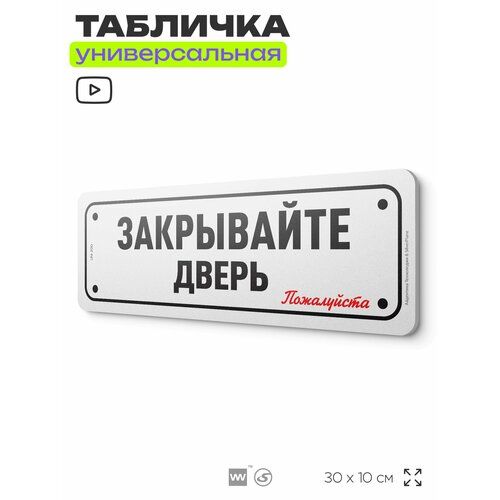 Найти - Табличка Закрывайте дверь, на дверь и стену, для подъезда, информационная, пластиковая с двусторонним скотчем, 30х10 см, Айдентика Технолоджи