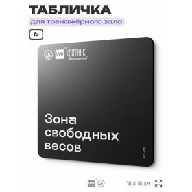 Найти - Табличка информационная Зона свободных весов для тренажерного зала, 18х18 см, пластиковая, SilverPlane x Айдентика Технолоджи